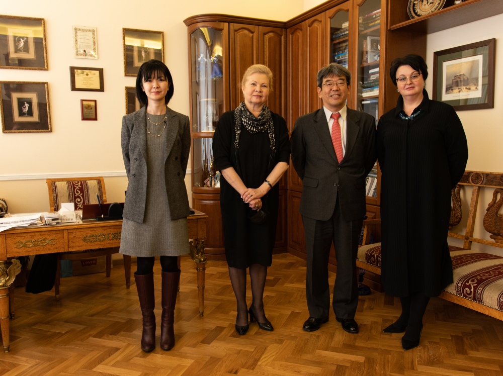 Marina K. Leonova, Principal of the Academy, welcomed the honored guests, and had a fruitful conversation with them, discussing specific features of training of Japanese students at the Academy and distilling a vector for further development of Russian-Japanese cultural connections in the field of ballet arts.