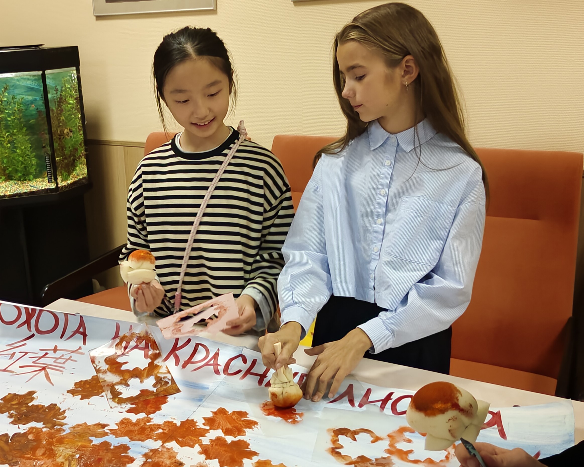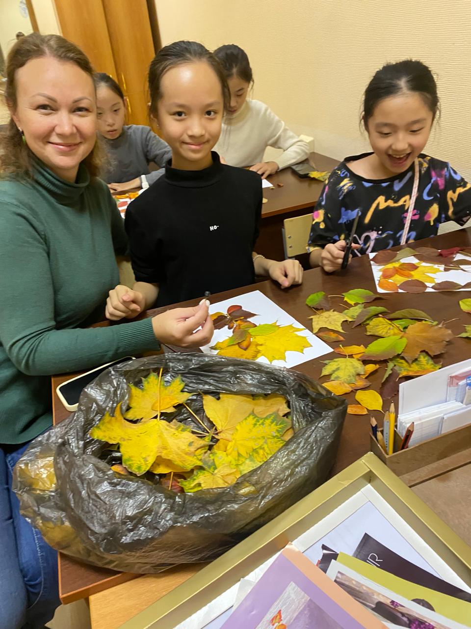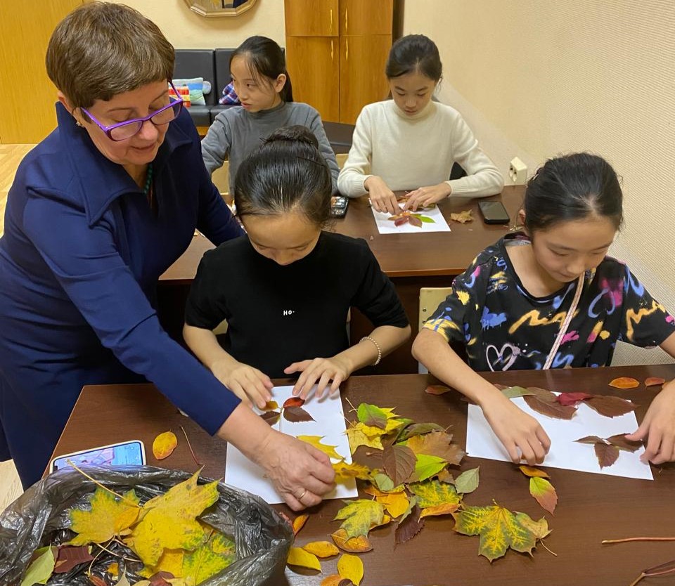 At the dormitory of the Moscow State Academy of Choreography (the Bolshoi Ballet Academy), foreign junior students, together with their teachers, made crafts from maple leaves for the traditional Japanese Momiji festival.