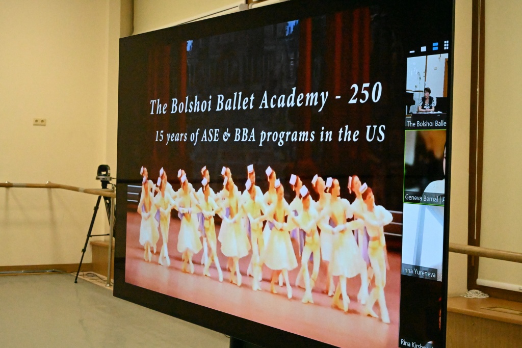 On November 16, 2022, Vera N. Kulikova (Honored Arts Worker of the Russian Federation, Associated Professor of the Classical Dance Department), addressed her peers from the USA with an online lecture and master-class dedicated to Turns and Pirouettes – Teaching and Training Techniques for Ballet Lessons for Juniors and Middle School Students. The event was a part of the Moscow State Academy of Choreography (The Bolshoi Ballet Academy) – 250 Program commemorating the 250th anniversary of the Academy’s foundation. Students of junior and middle classes of the Academy assisted Ms. Kulikova.