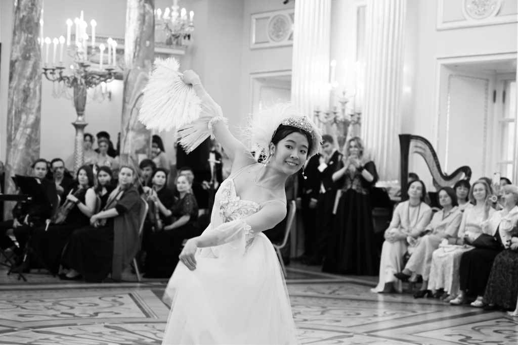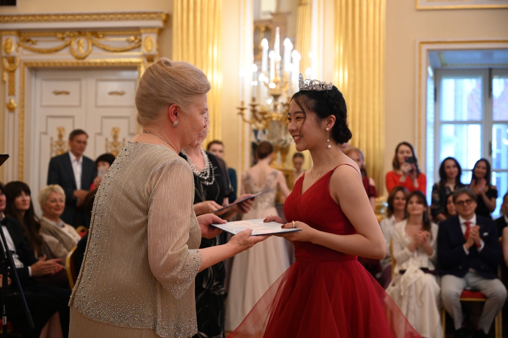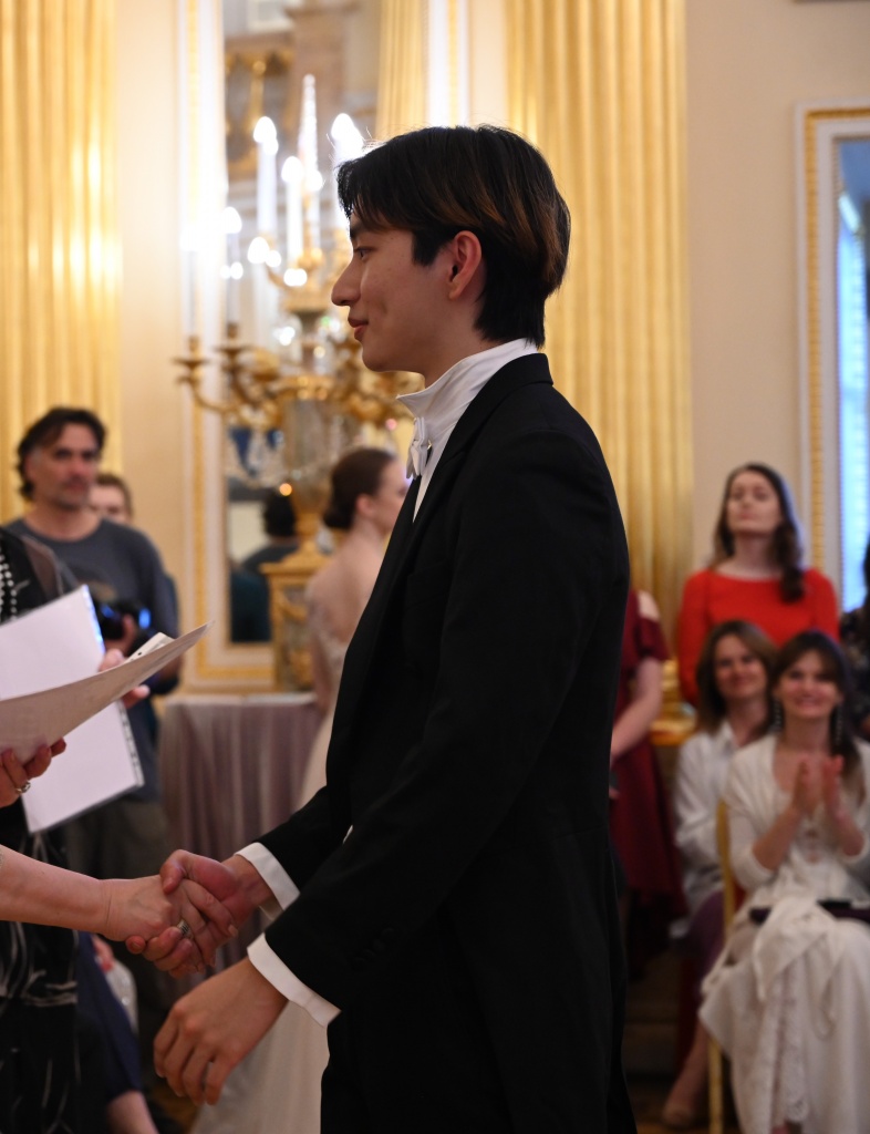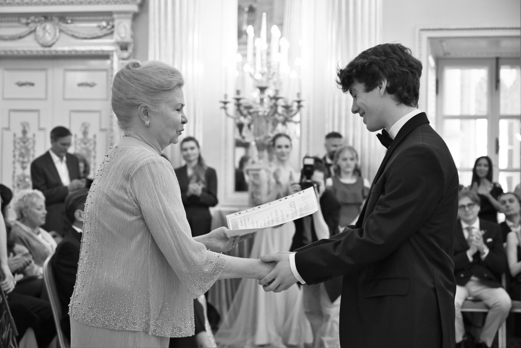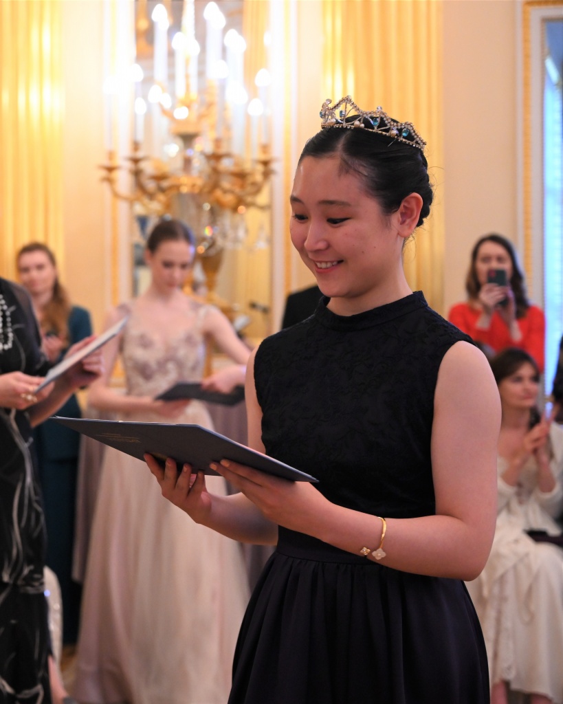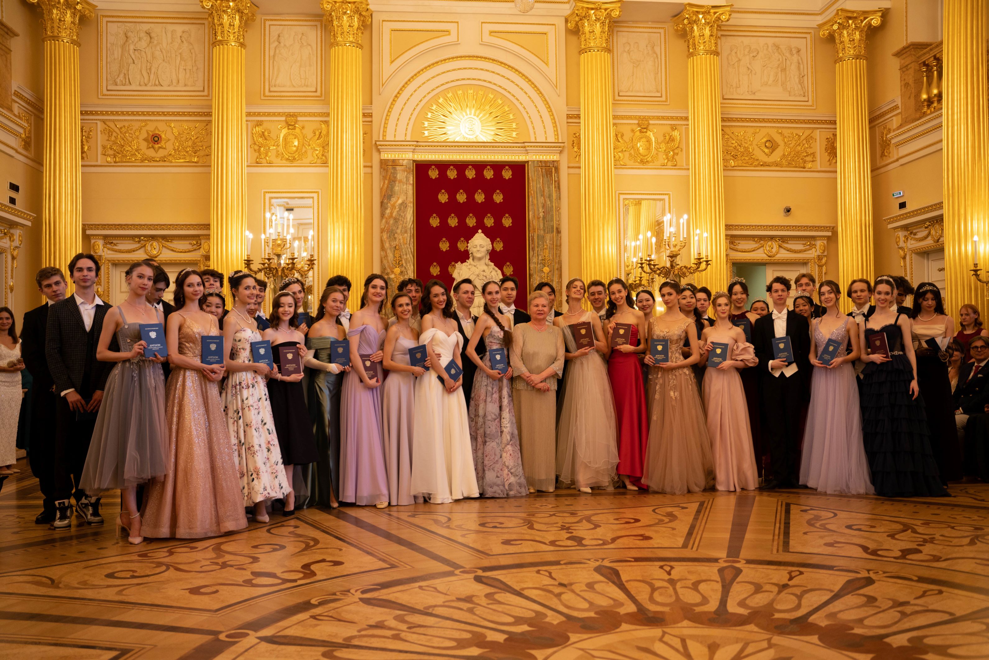 The Farewell Gala included a polonaise, a waltz, a sarabande, a polka-a-trois, a gavotte, a gallopade, along with other ballroom dances performed by the graduates. Foreign students (11 graduates and 2 interns from Italy, USA, UK, Japan, Taiwan and Kazakhstan) put together a “Thank You” dance number for the faculty of the Academy and guests of the ceremony.