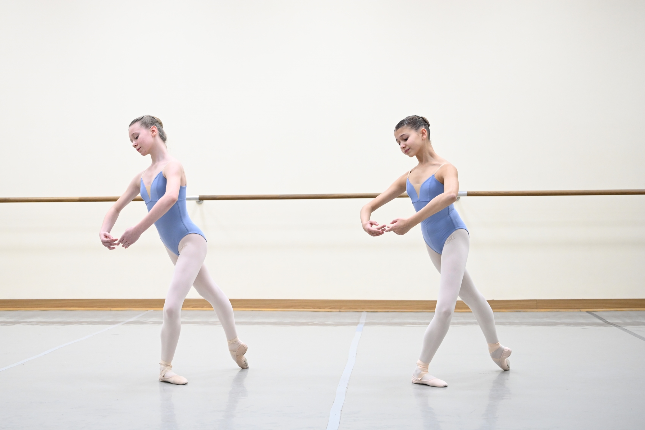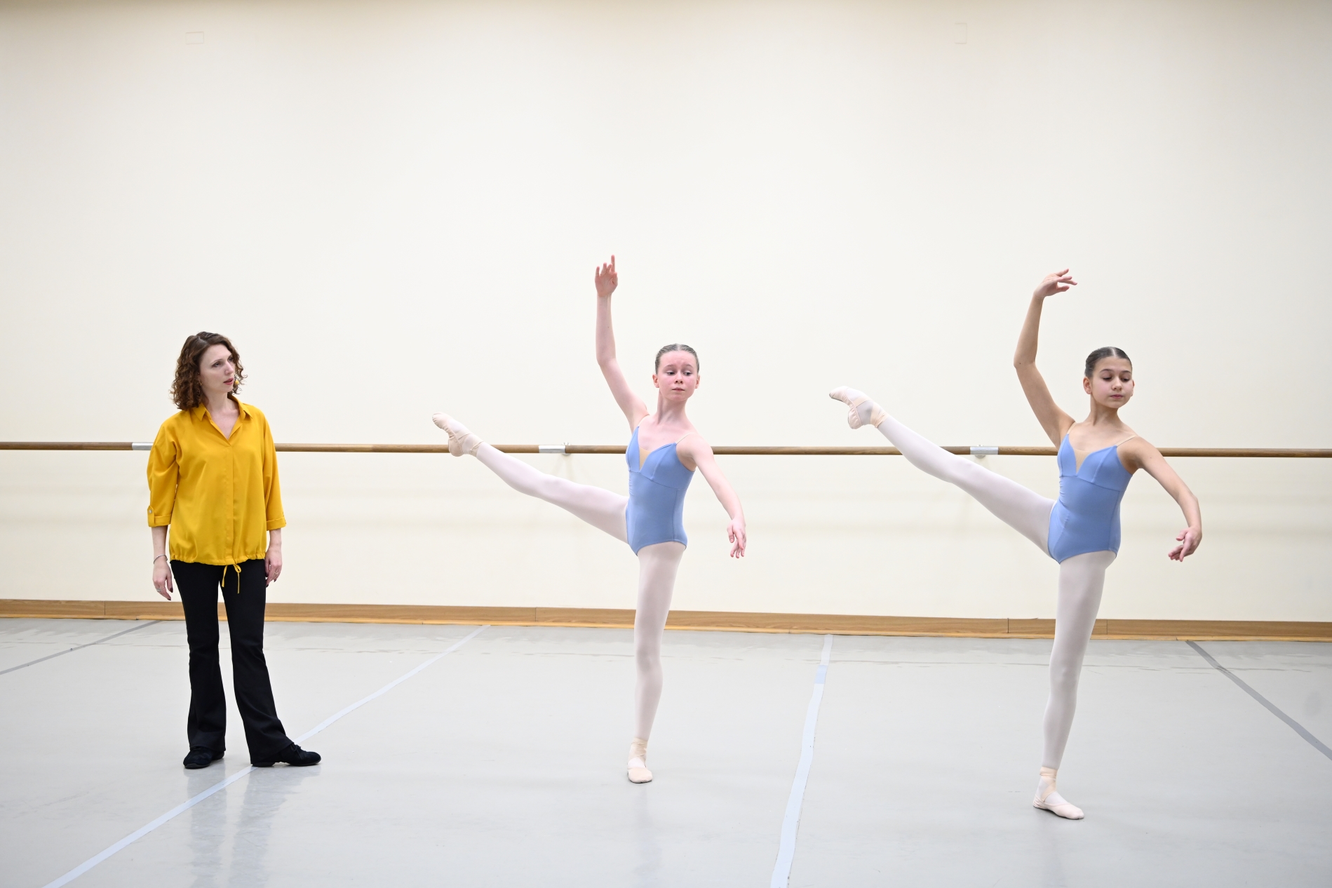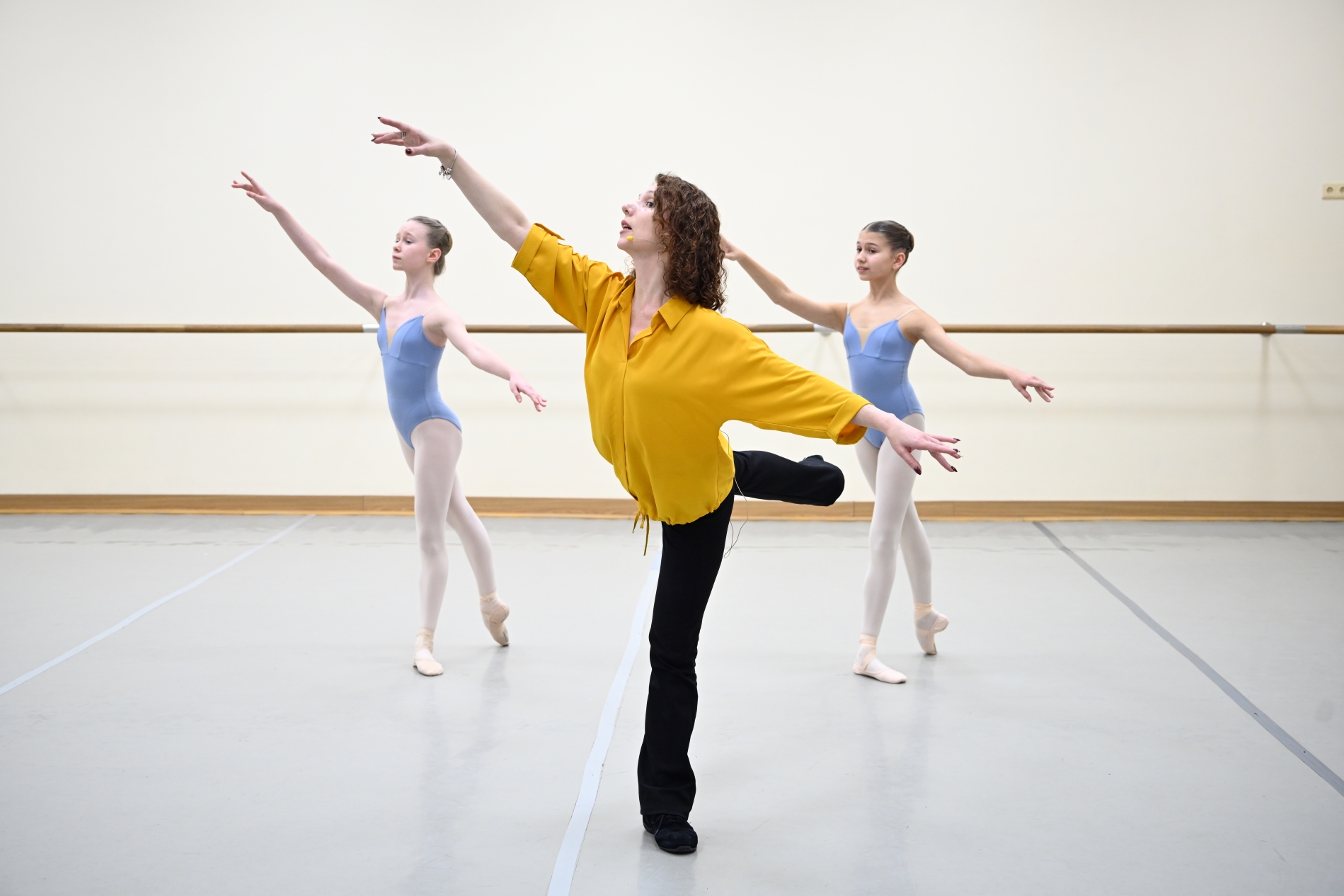 3rd year student girls assisted Ekaterina Trunina, teacher of the Classical Dance Department, with the demonstration of techniques and motions.