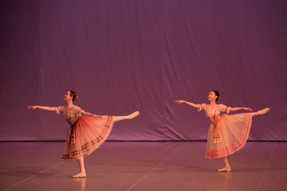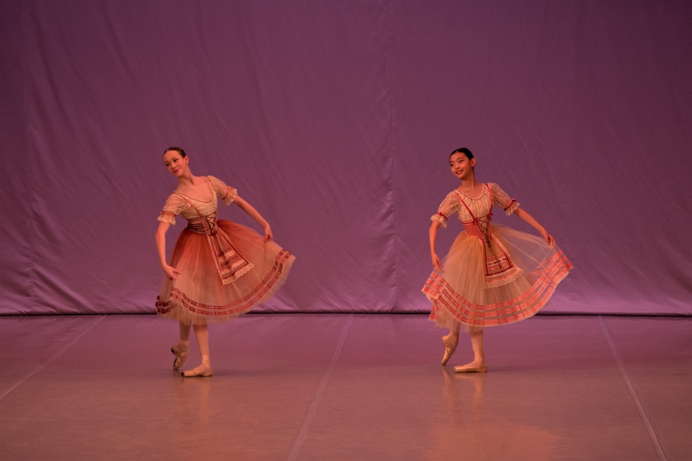 Every student presented two classical heritage pieces. Rio Nakata danced the Princess Aurora variation from The Sleeping Beauty and the Esmeralda variation from La Esmeralda. Yumi Kaneda danced the Gamzatti variation from and La Bayadère and the Esmeralda variation from La Esmeralda. Oji Fujino presented the Albert variation from Giselle and the Philippe variation from The Flames of Paris. Mayuko Fujii and Margarita Tyusheva presented variations from La Naïade et le Pêcheur and from Le Pavillon d'Armide.